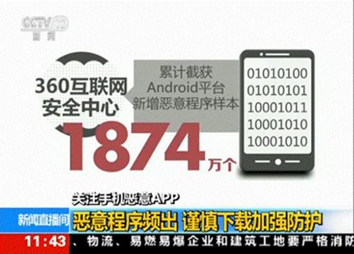 《新闻直播间》节目了解到,像这样的恶意APP其实不在少数。360手机安全中心2015年累计截获安卓平台新增恶意程序样本1874万个,平均每天截获Android平台新增恶意程序样本51342个,有3.7亿人次手机用户被感染。12321网络不良与垃圾信息举报受理中心副主任郝智超建议广大手机用户,安装360手机卫士等具备防护能力的手机安全软件。