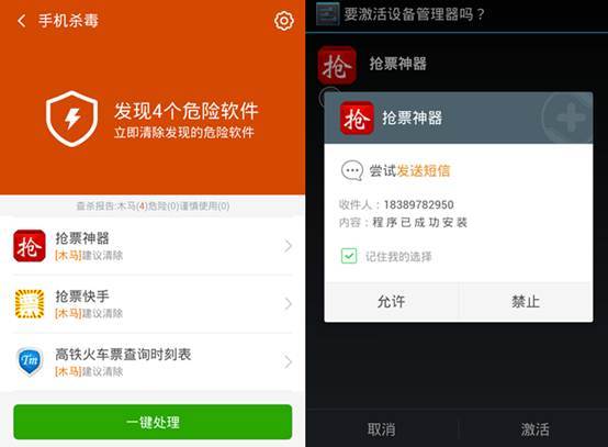 对于防范普遍存在的恶意插件,360手机安全专家建议消费者,下载手机APP时通过官方网站或具备鉴定能力的第三方手机应用市场。同时使用360手机卫士,通过智能大数据库,也可识别鉴定恶意程序,避免消费者遭遇假李逵。